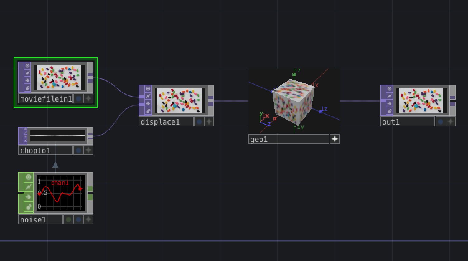 There’s a great introduction series by Ben Voigt that walks through TouchDesigner fundamentals. In short, TouchDesigner is a software built for processing signals, generally audio or video. TouchDesigner projects (or networks) consist of operators (nodes) that output data to other operators. Signals are transformed with operators such as TOP, CHOP, or SOP, and then sent to outputs, like the screen of your laptop or the surface of deadmau5’s cube.