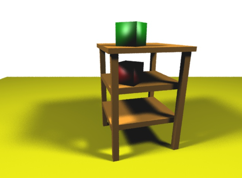 This assignment required ray-sphere and ray-triangle intersection, phong shading, phong lighting, and shadow rays. For extra credit I’ve also implemented soft shadows and anti aliasing.