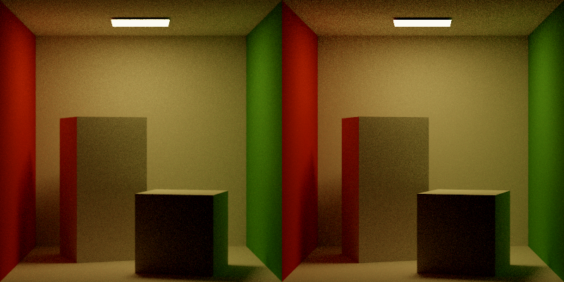 I am extremely pleased to be on the other side of laying the foundations for the path tracer and looking forward to implementing these new integration schemes. At a glance, it seems the renderer has all the pieces in place to demonstrate the above techniques, though creating some scenes with more dark surfaces or a stronger occluded light may be useful if there is no apparent difference in result or performance. Additionally, these techniques are meant to demonstrate efficiency at higher/near-production sample rates, so at the least some basic multithreading could save a lot of time in rendering.