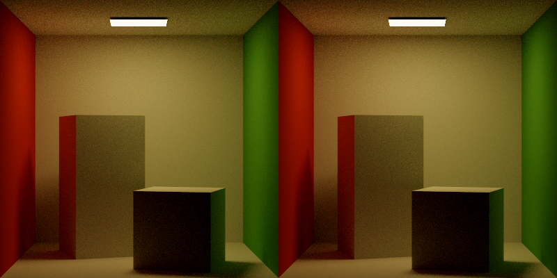 Two images that look about the same is not very exciting, but in this case that’s the best outcome. The left render is Tungsten’s formulation of forward recursive path tracing, and the right is EARS’ formulation.